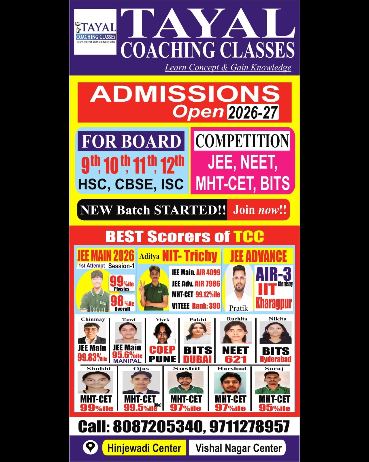 #TayalCoachingClasses #TCC #JEECoaching #NEETCoaching #MHCET #BITSATPreparation #BoardExams #BestCoachingInWakad #CoachingClassesNearMe #JEEPreparation #NEETPreparation #ConceptClarity #StudySmart #TopCoachingClasses #EducationMatters #SuccessJourney #WakadClasses #PimpleSaudagar #Ravet #PhysicsCoaching #ChemistryCoaching #MathsCoaching #FoundationStrong #ResultsDriven #CompetitiveExams #StudyWithTCC